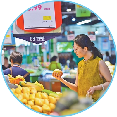 山东省青州市一家超市,消费者在挑选水果。 王继林摄(影像中国)